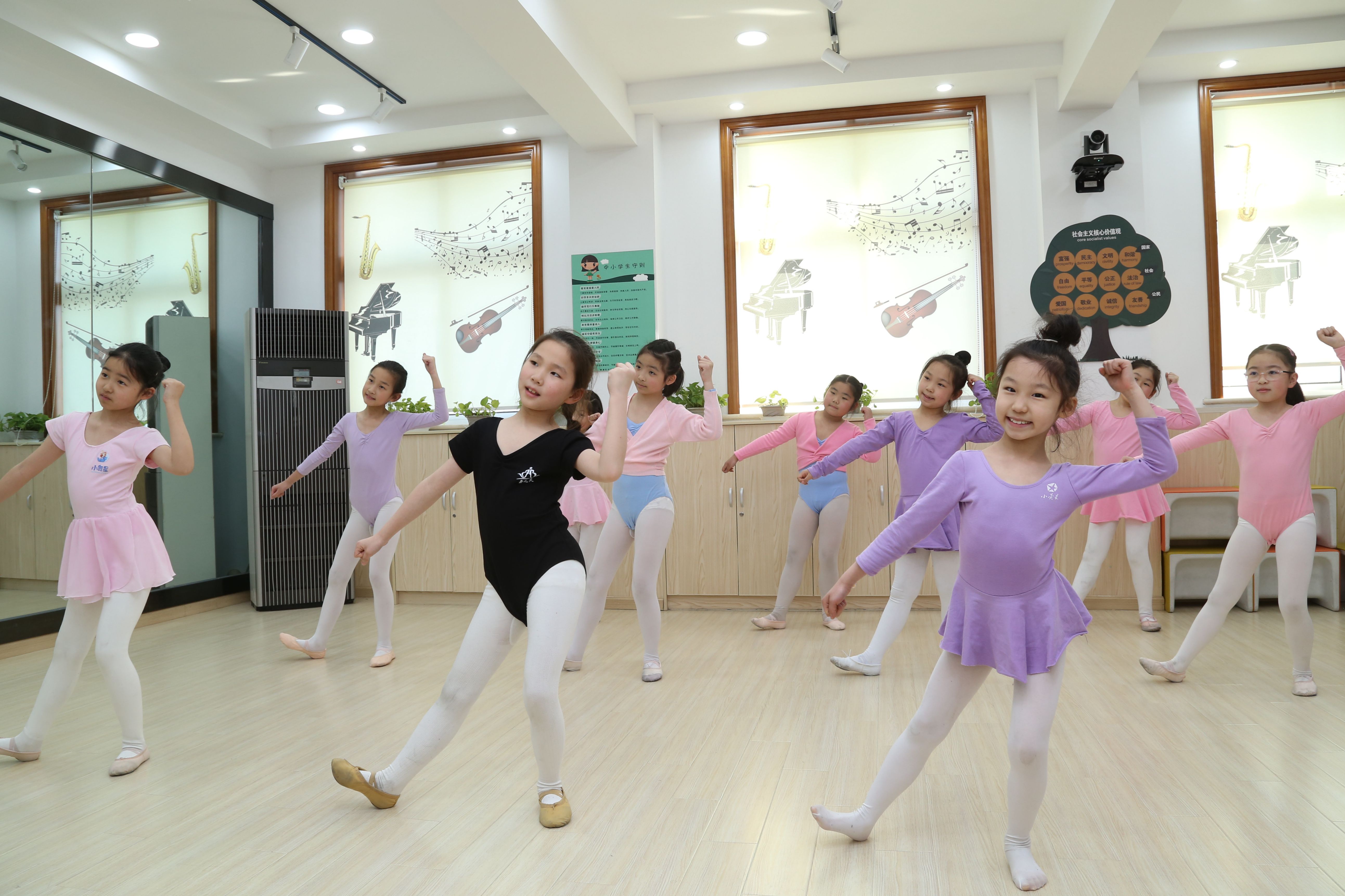 在课后的舞蹈课上,孩子们露出甜美的笑容