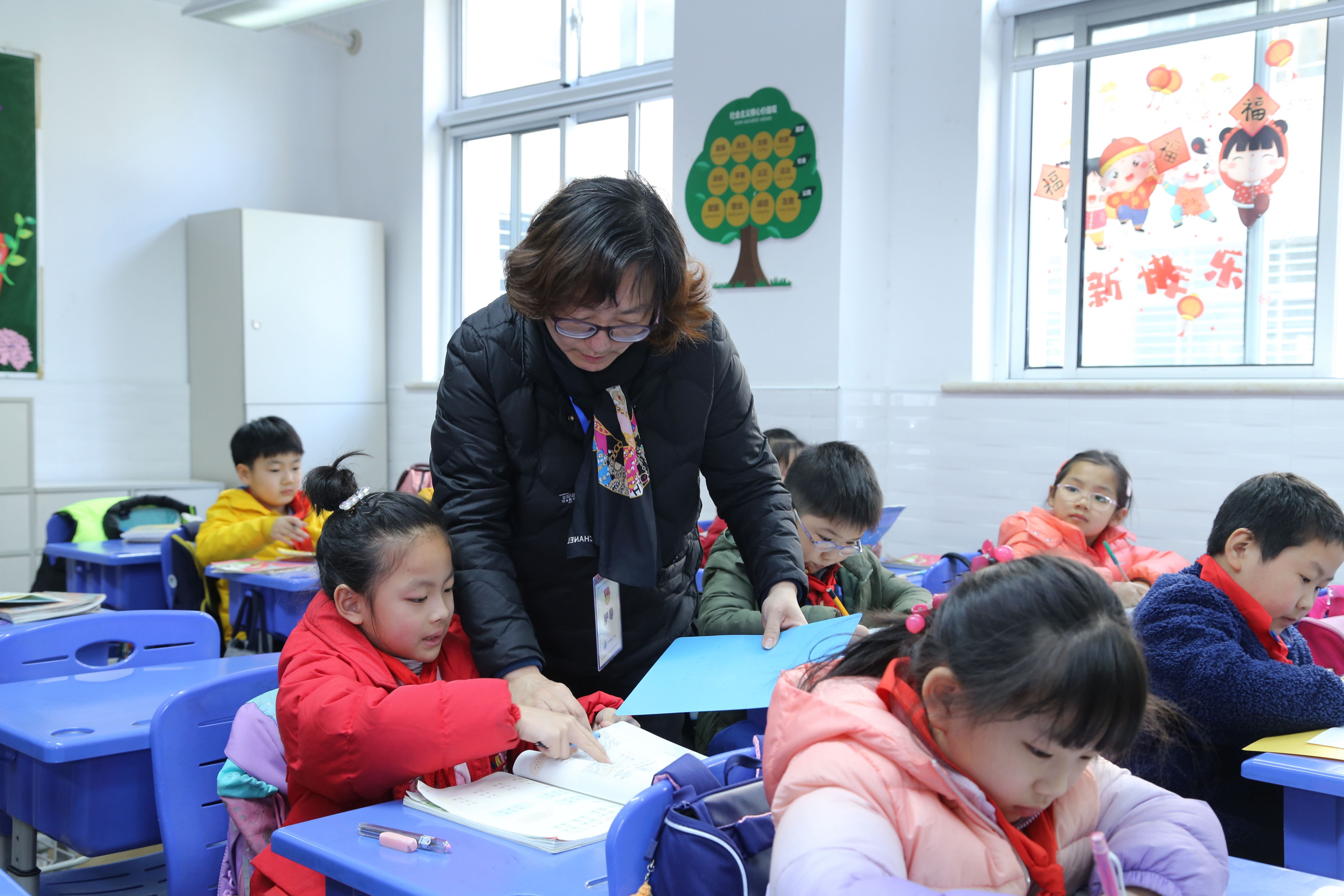 志愿者老师指导学生完成作业