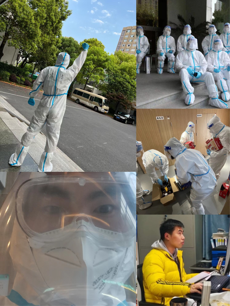 从3月12号开始,徐汇校区毕业班辅导员、学生党支部书记孙浩浩勇挑重担,一直坚守在校园里。当学院多次提出派人轮换时,他都坚决要求继续留守,坚守岗位。不论是核酸检测、为学生分送餐食、安抚学生情绪还是照顾受伤学生,他总是冲锋在前,忙碌着的“大白”里总能找到他的身影,他的行动彰显了一名优秀共产党员的责任与担当。