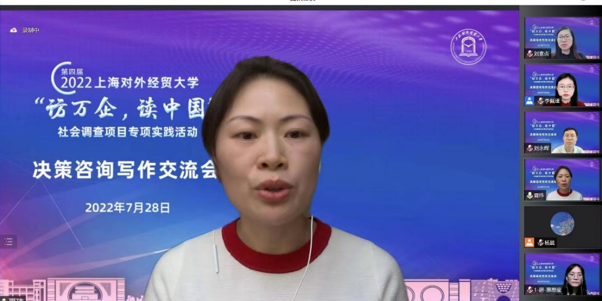 此外,由统计与信息学院党委书记副教授刘素贞等教师带队,来自统计与信息学院、国际经贸学院、工商管理学院和国际商务外语学院的研究生和本科生组成的调研队,分别围绕主题对相关企业开展调研,并撰写出调研报道,提出具有建设性的意见和建议。同时,为帮助师生结合企业调研撰写高质量决策咨询报告,项目邀请校国际经贸创新与治理研究院(智库中心)副院长、学校办公室副主任夏玮为调研全体师生写作决策咨询报告作指导。围绕写作要点、框架设计、选题内容、选择“切入点”等方面进行了讲解,进一步明确调研分析报告和决策咨询的发力重点,帮助调研队师生提升决策咨询和建言献策的能力,为“访万企,读中国”社会调查项目取得实效奠定坚实基础。
