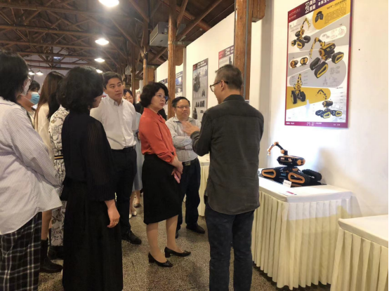 上汽大通汽车有限公司设计中心外饰创意系统经理王鹏代表校企合作单位讲话。他充分肯定了艺术设计学院围绕交通载运工具及其数字座舱设计所开展的产教融合项目,肯定了艺术学院师生的设计创新与研发能力,希望进一步推进校企产教深度融合,促进教育链、人才链、产业链的全面发展。开幕式结束后,党委副书记、副校长朱晓青一行参观了学生的参展作品,听取了在场负责老师、学生就毕业生情况及毕业作品的介绍,还与师生亲切交流作品的创意理念、制作过程,听取他们对作品内涵的理解和阐释,对艺术与设计学院学生毕业创作中所表现出的人文情怀、独特创意、艺术思考给予了高度评价。