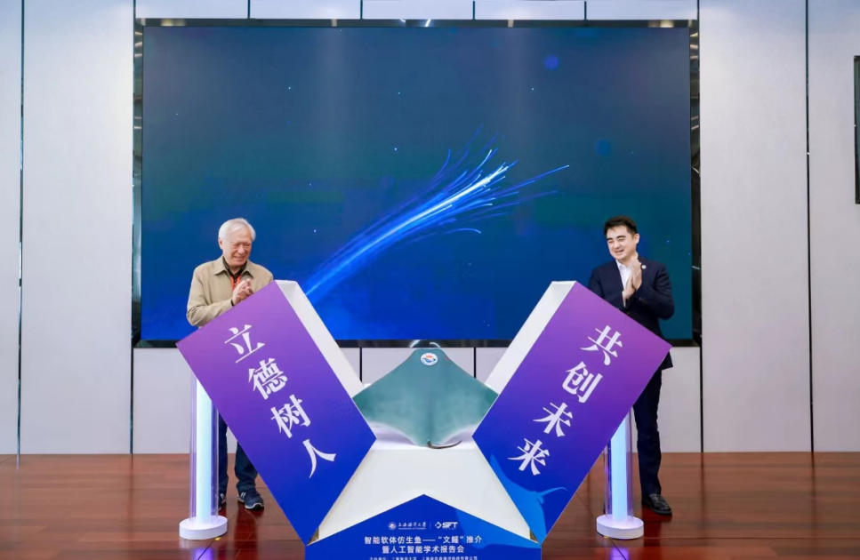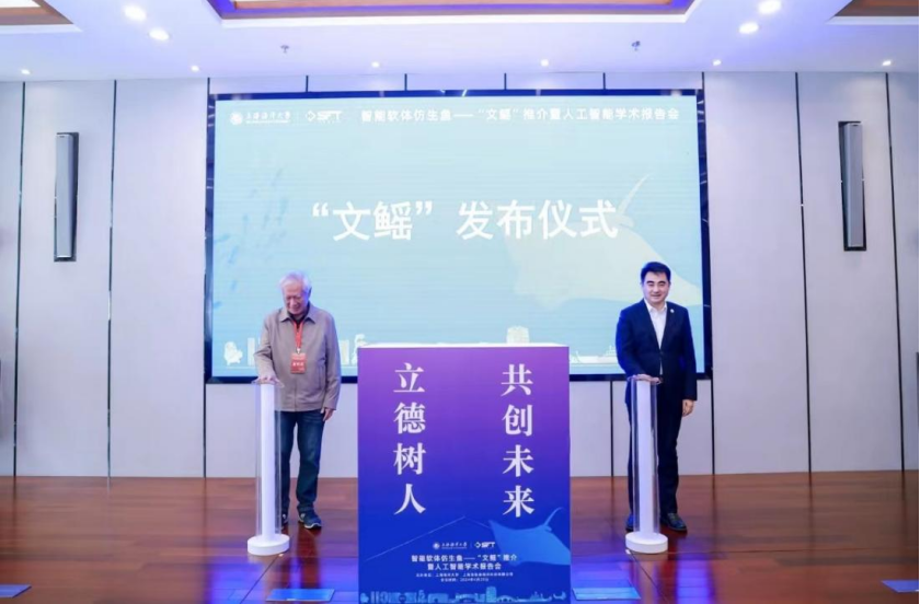 当天,上海海洋大学展示了这款智能软体仿生鱼。该仿生鱼由上海海洋大学核心成员30余人的仿生鱼团队历经10余年研发,取名“文鳐”。“文鳐”的核心器部件已全部国产化,其效率高、能耗低、功能多,同时具备共融性、超仿生、隐身性三大优势,满足长续航、高机动、大负载、大范围作业需求。