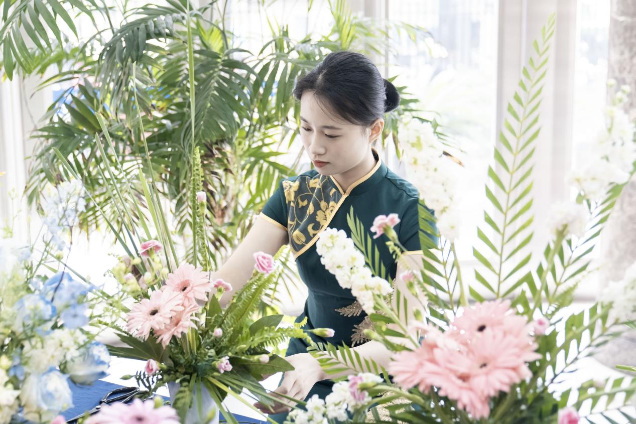 学生有信心,家长也放心。此次展示活动吸引了一批学生家长前来,唐思怡的妈妈刘女士在这次展示活动中亲见女儿的插花和摆台作品很惊喜,对她的成长也非常有感触。“今天很开心,看见我女儿在学校掌握了这么多专业技能,我放心了。”