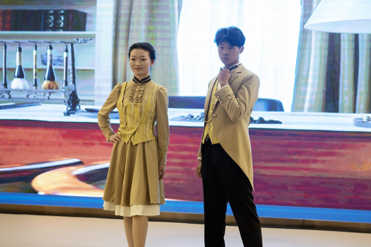 “这一个月来,我们与上海大厦联合举办服务技能大练兵,更是产教融合搭台、校企合作赋能的最佳诠释。”据上海市东湖集团有限公司党委委员、副总经理王永明介绍,东湖酒店产业学院的蓝图是一步步逐渐转化实景图的。学院遴选了学校和企业最优秀的师资,构建优势互补的校企“双导师”团队;整合了职业与培训功能,校企共建智慧酒店产教融合实训中心,开发定制化的培训课程,开展“双课堂”建设。学生们可以走进西郊宾馆、衡山花园酒店等,在“老师”和“师傅”的联合授课下,深入探析酒店的企业文化、概况沿革、岗位职责,更清晰地认识未来的就业方向,将课堂所学专业理论知识与工作实践相联系,进一步提升专业认同感和职业责任感。