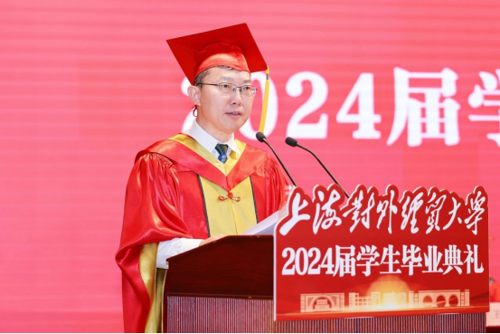 6月25日上午,上海对外经贸大学2024届学生毕业典礼在松江校区举行,学校校长汪荣明以“书写属于自己的人生方程式”为题,寄语3585名毕业生。