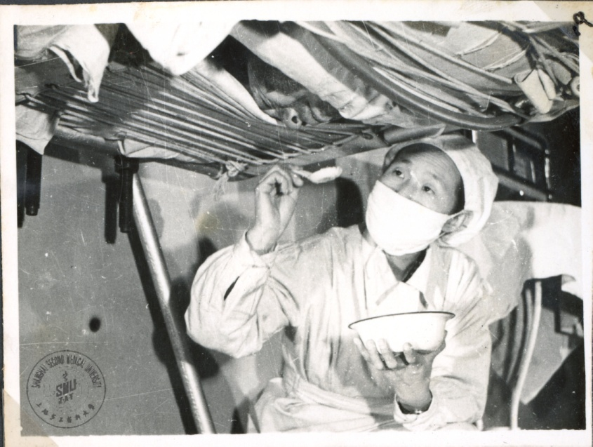 展览勾勒描摹出董方中、杨之骏、史济湘、张涤生等杏林先贤们在既无世界参考案例又无临床救治经验的条件下,探索形成“冬眠疗法”“瑞金公式”抗休克、多粘菌素B抗感染、“邮票式植皮”愈创面等“中国方案”。在抢救过程中,原上海第二医学院(现上海交通大学医学院)基础部余㵑教授首次将绿脓杆菌噬菌体应用于临床治疗,为我们塑造了基础与临床紧密结合的实践典范。在展览中还可以看到,当年医护人员一连十几个小时守在邱财康病床旁,护士跪在地上一口一口地把高热量的营养喂给病人,全院职工在两小时内九百多人报名愿意捐献鲜血和皮肤,二医师生不畏艰苦,奋力寻找噬菌体,以及学生志愿者江月琴、朱根梅接受从邱财康身上分离出的混合菌苗注射获“抗体血”回输等一幕幕催人泪下的感人画面。