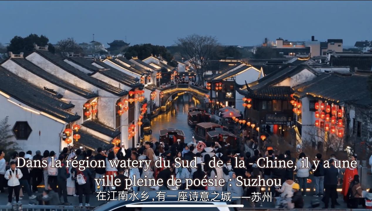 “J'espère que plus d'amis étrangers viendront à Suzhou pour découvrir sa culture profonde et son développement extraordinaire ! ”(希望有更多的外国友人来到苏州,了解苏州的深厚文化底蕴和伟大发展成就。”上海对外经贸大学国际组织学院(贸易谈判学院)学生徐姝怡以“苏州——江南水乡的现代魅力”为主题,采用法语和汉语双语介绍家乡苏州的独特风貌,并拍摄了一段小视频。视频从苏州全景航拍开场,依次呈现了水乡风光、山塘河景、特色美食、古典园林以及现代园区的璀璨夜景,生动展现了苏州的自然之美、人文之韵以及现代化发展的蓬勃活力。徐姝怡将视频上传到了小红书,播放量不断攀升。有网友留言表示“被苏州圈粉”“一定要去打卡”。