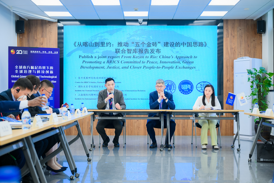 会上,复旦发展研究院金砖国家研究中心、国际关系学院国家安全与发展研究院与上海国际问题研究院国际战略与安全研究所三家单位联合发布了《从喀山到里约:推动“五个金砖”建设的中国思路》的智库报告。在国际格局加速演变,全球治理体系面临深刻重构的当下,中国提出包括“和平、创新、绿色、公正、人文”的“五个金砖”建设倡议,既是应对百年变局加速演进、科技产业革命纵深发展、国际格局系统性重构的应对,更是推动新型南南合作范式创新和普惠效应,提升全球治理体系包容性的中国思路。本报告旨在通过阐述“五个金砖”建设的中国思路,为推动各国间的平等互利合作,提升发展中国家和全球南方整体的国际议程参与、设置和引领能力提供帮助。它详细盘点了“五个金砖”建设面临的内外部压力和核心思路,以及成员国和其他各方可以采取哪些行动来抓住机遇、应对挑战。