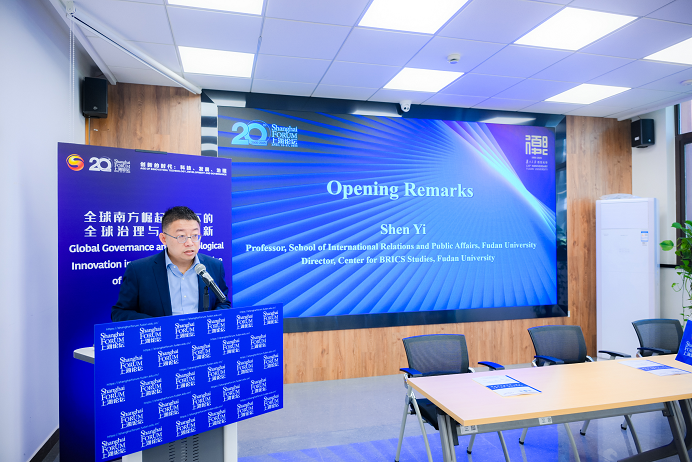 4月26日下午,上海论坛2025分论坛“全球南方崛起背景下的全球治理与科技创新”在复旦大学智库楼举办。本次论坛由复旦大学主办,复旦发展研究院金砖国家研究中心承办,汇聚了中外智库和高校学者,共同探讨金砖国家合作机制如何为全球南方国家提供新的发展动能,并在数字经济、绿色技术、人工智能等新兴科技领域以及全球治理体系改革中发挥引领作用。本次会议由复旦发展研究院金砖国家研究中心主任沈逸教授主持,联合国贸发会全球化与发展战略司经济事务官员王大为和国际关系学院院长胡继平教授分别致辞。