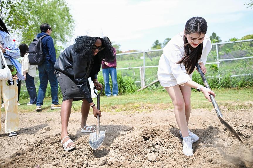 在农耕体验环节,师生们纷纷化身“新农人”,体验玉米种植等过程,留学生代表们也分享各自国家的农耕故事。在绿意翻涌的田野花丛中,师生共同完成喜迎建校75周年主题拼图。参加活动的校友们深情回忆学生生涯的点点滴滴,感恩师长们的言传身教、暖心关怀,怀念同窗厚谊、手足情深,更感慨于上海发展日新月异。