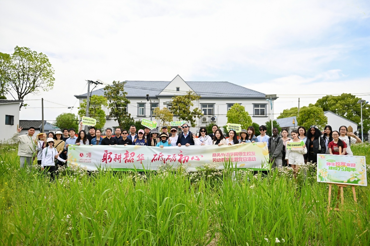 4月26日,上海商学院商务外语学院师生、校友及部分留学生前往牌楼村,开展“理论浸润+实践深耕+科技赋能”劳动教育。本次劳动教育创新融入沉浸式体验,通过乡村振兴产业实地参访、双语情境农耕劳动、非遗技艺传承实践与前沿智能制造观摩等活动,打造立体化、互动式的主题场景,将抽象的劳动精神转化为可感知、可参与、可传承的育人载体。