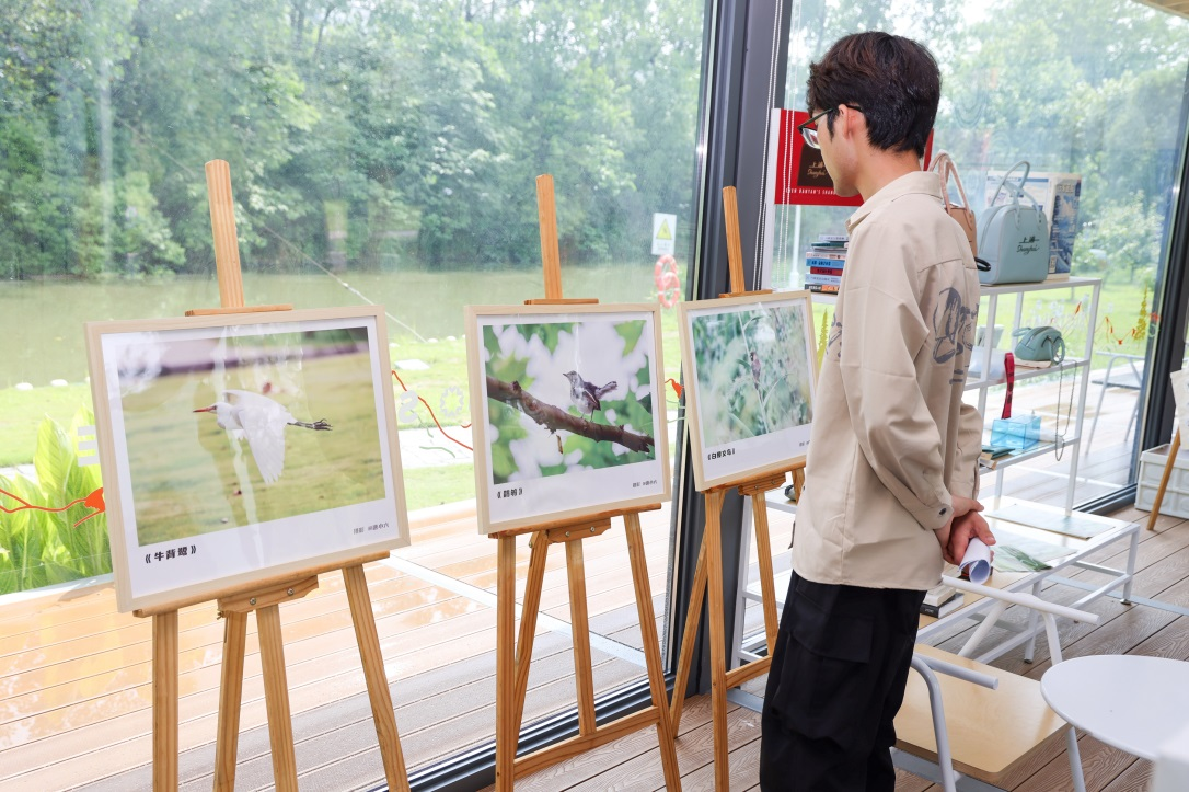 校园文旅书房里展示了20多幅鸟类摄影作品,它们全部是在校园里拍摄的。作为本次“观鸟课”的设计人,黄晓青表示,上经贸大松江校区的生态环境非常好,五月又正是鸟类育雏的高峰期,觅食与喂食与鸟喙有很密切的关系。希望借由这次活动,大家可以更多地关注身边的自然伙伴。