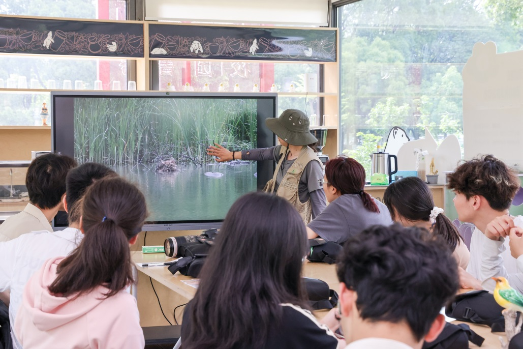 5月21日,在国际生物多样性日来临之前,果木自然教育中心的黄晓青和王京超带着专业观鸟设备走进上海对外经贸大学,为学校学生带来了一堂别开生面的观鸟课。活动由UTC行家创始人、校园文旅书房捐资人、学校1989级经济系校友孔晓红女士发起,校党委宣传部和会展与传播学院联合举办。
