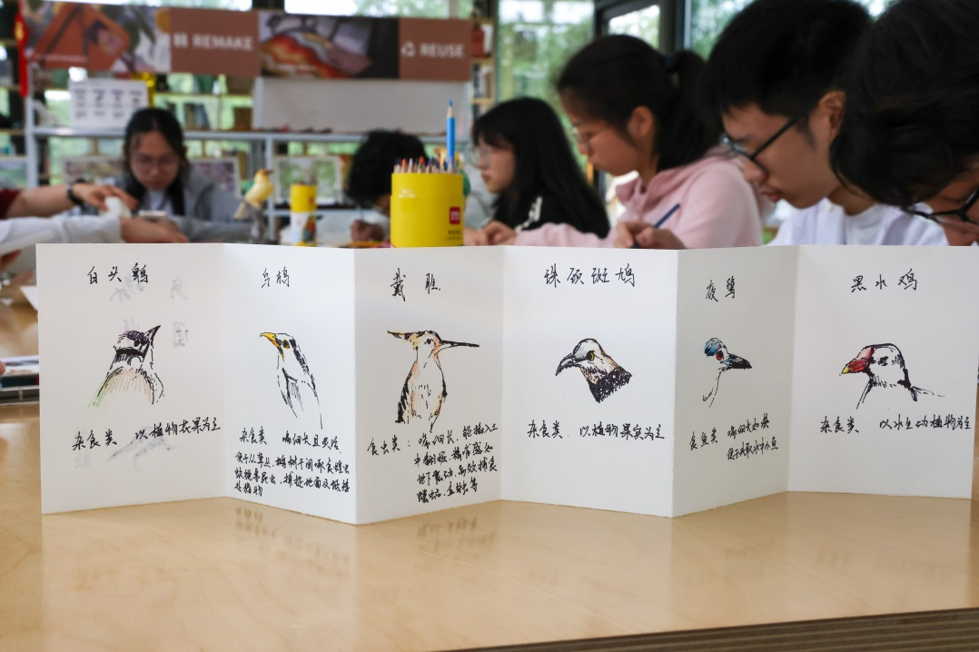 在活动的尾声,王京超又指导同学们通过绘图的形式,回顾了这堂课所学的知识。文化产业管理专业的沈怡雯绘制出了精美的《小小鸟喙说明书》,她表示:“通过这次活动我第一次看到黑水鸡的巢,它竟像船一样在水面上浮动。”