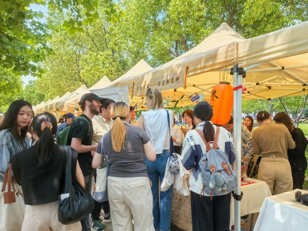 上海对外经贸大学连续三年举办校园非遗节。今年非遗市集摊位的“摊主”更显年轻化,同时,学校的非遗创新实践项目也越来越多,32个摊位中有9个是教师指导学生的实践项目,“织潮玩家”摊位由会展系专业教师李艳霞带领研究生和大一学生负责。李艳霞表示,这种将会展旅游商业模式创新与活动实践相结合的尝试给了学生们巨大的鼓舞。在游园之后,金融学专业的吴东屿说:“我在年轻的‘传承人’身上看见了他们对非遗的热爱与坚持,也希望自己能够为生生不息的非遗传承贡献自己的力量。”