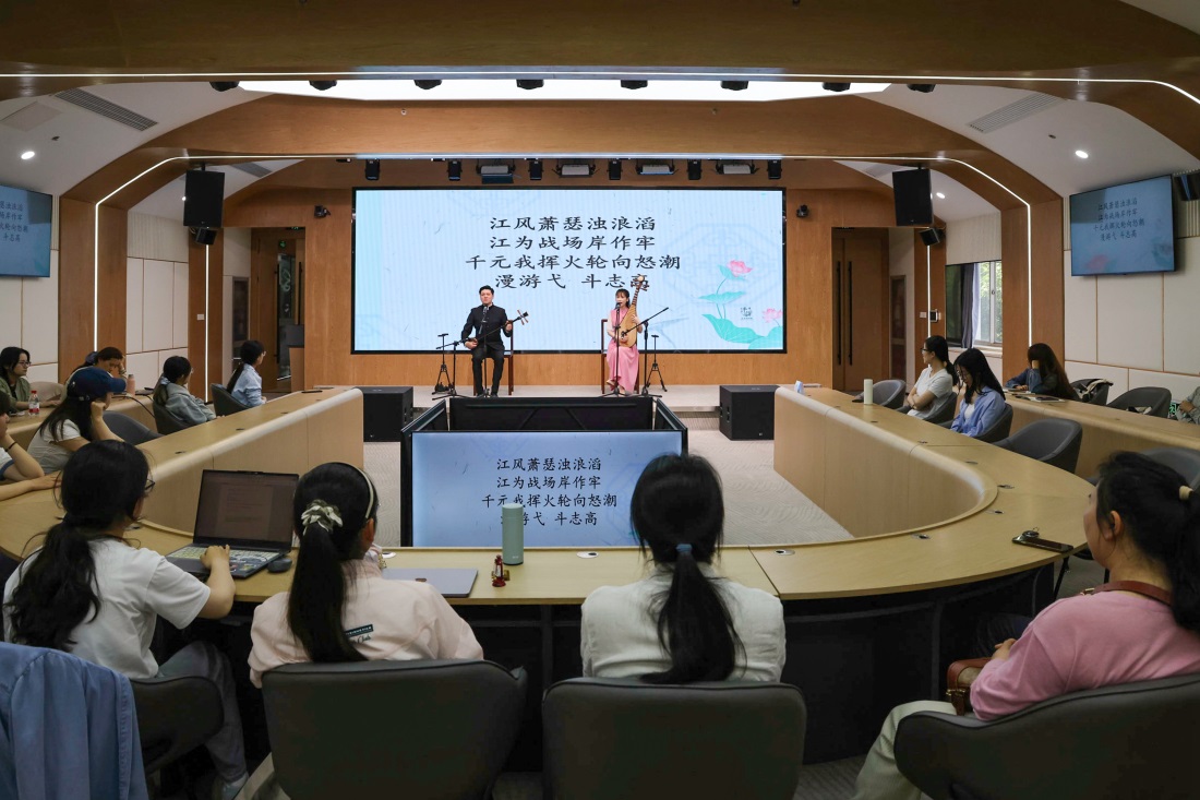 “评弹是观察江南社会的窗口。”高博文团长为大家详细讲解了评弹的历史渊源、特色和艺术魅力。《江南好风光》《莺莺操琴》《杨八姐·比武》《千里江山图·对望》让师生如痴如醉。最后,高博文团长以蒋调《天长地久永不分》压轴,将白蛇传说的千年痴缠揉入现代编曲,实现了传统与现代音乐的完美碰撞。英语专业的李书宁是第一次听评弹,她说:“第一个节目就把我引入了江南烟雨中,我不仅领略了评弹艺术,还了解了江南评弹的文化内涵。”