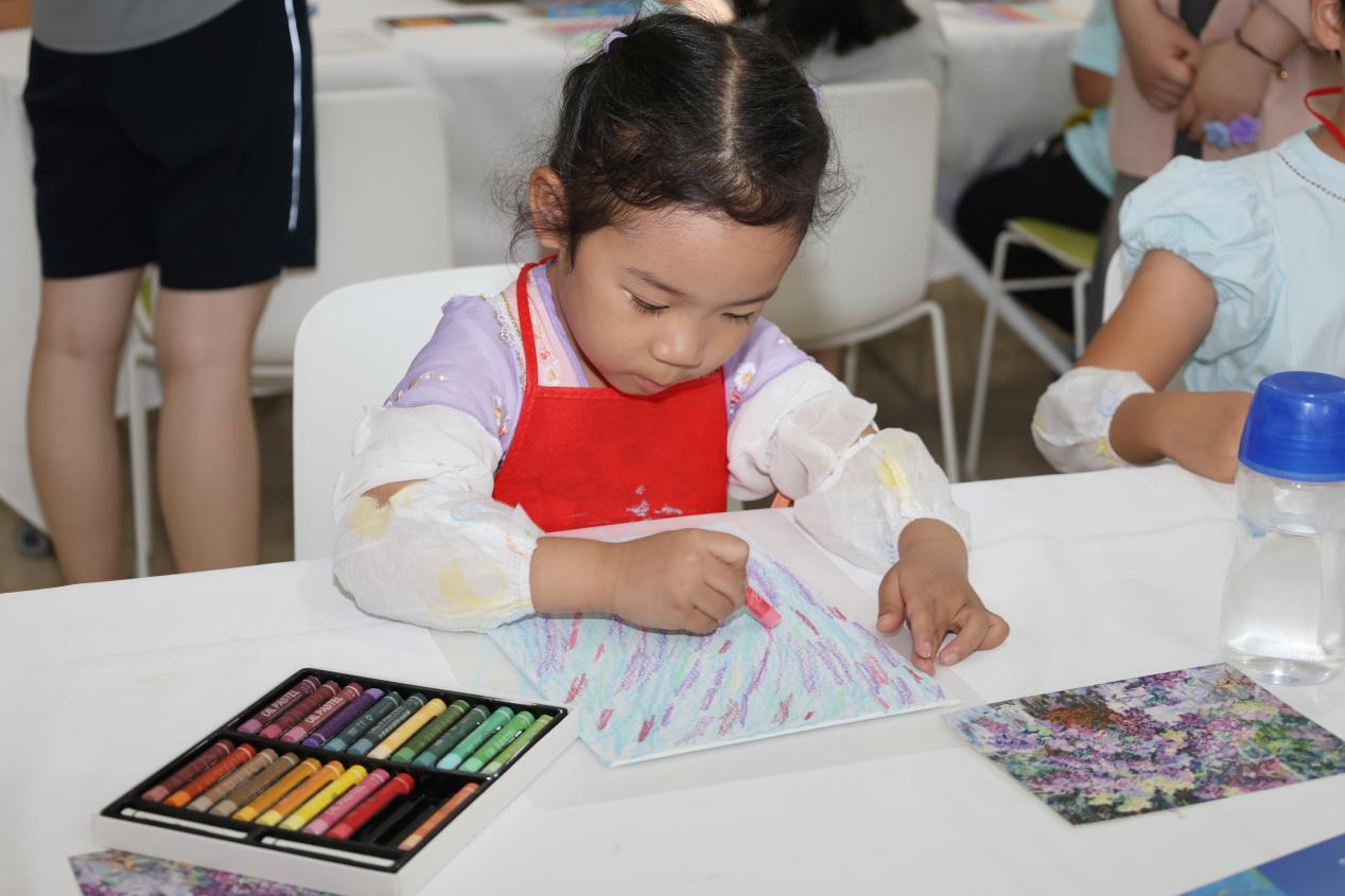 在艺术手作课程体验环节,孩子们用画笔感受美