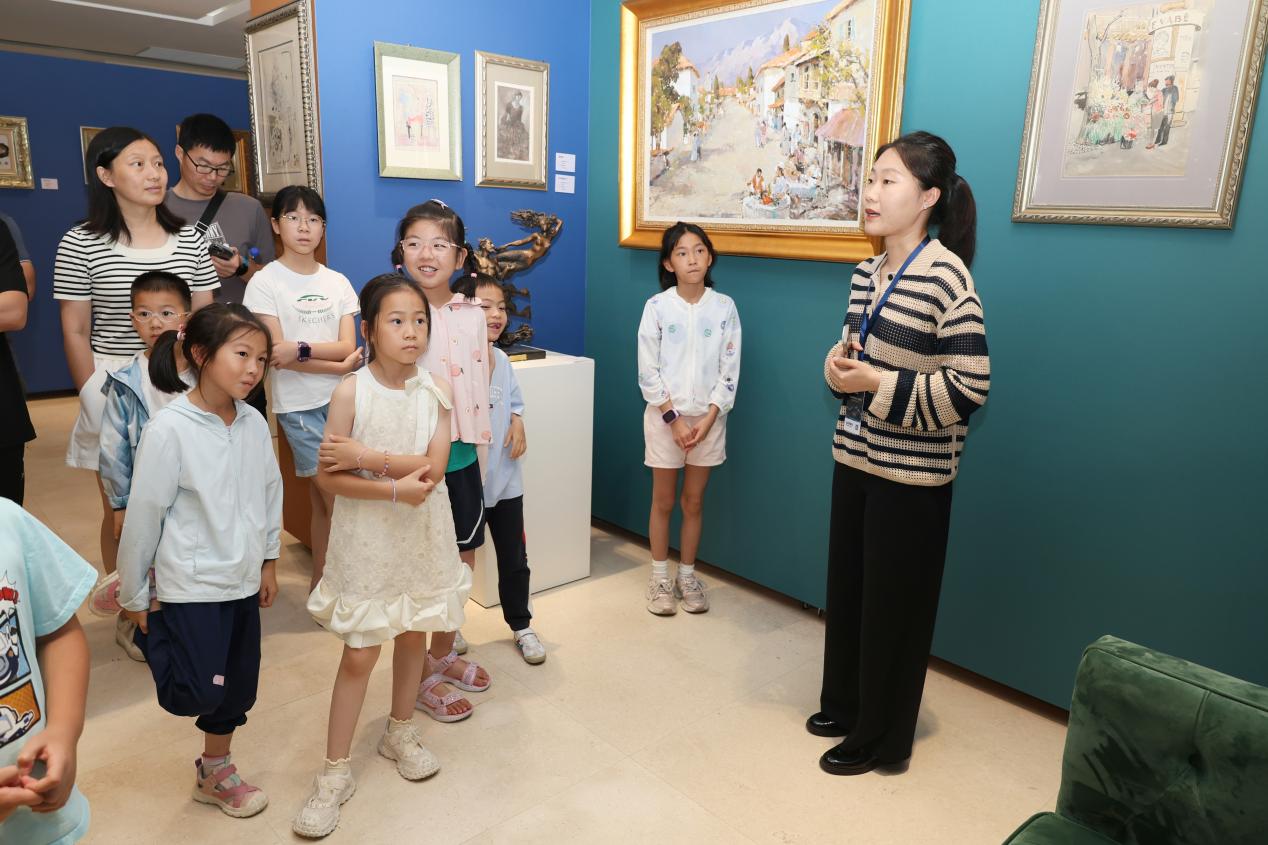 馆内陈列的艺术作品吸引孩子们驻足聆听
