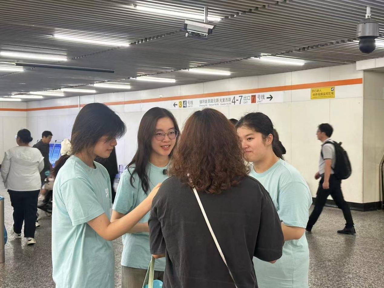 今年暑假,上海对外经贸大学“轨聚众智”青年实践团队的成员们在上海地铁4号线西藏南路地铁站开展实地调研,用所学知识提升上海地铁的服务效率。