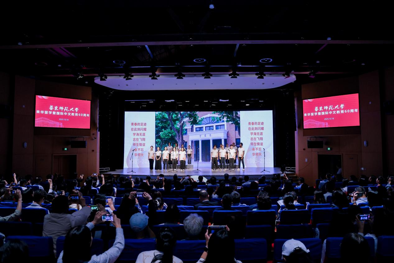 “我的华师大,你是我青春年华的一切,岁月会老,初心不褪……”在质朴的歌声中,中外师生共同演绎了由黄茶亲自作词谱曲的《我的华师大》,悠扬旋律里满含跨越山海的深厚情谊。