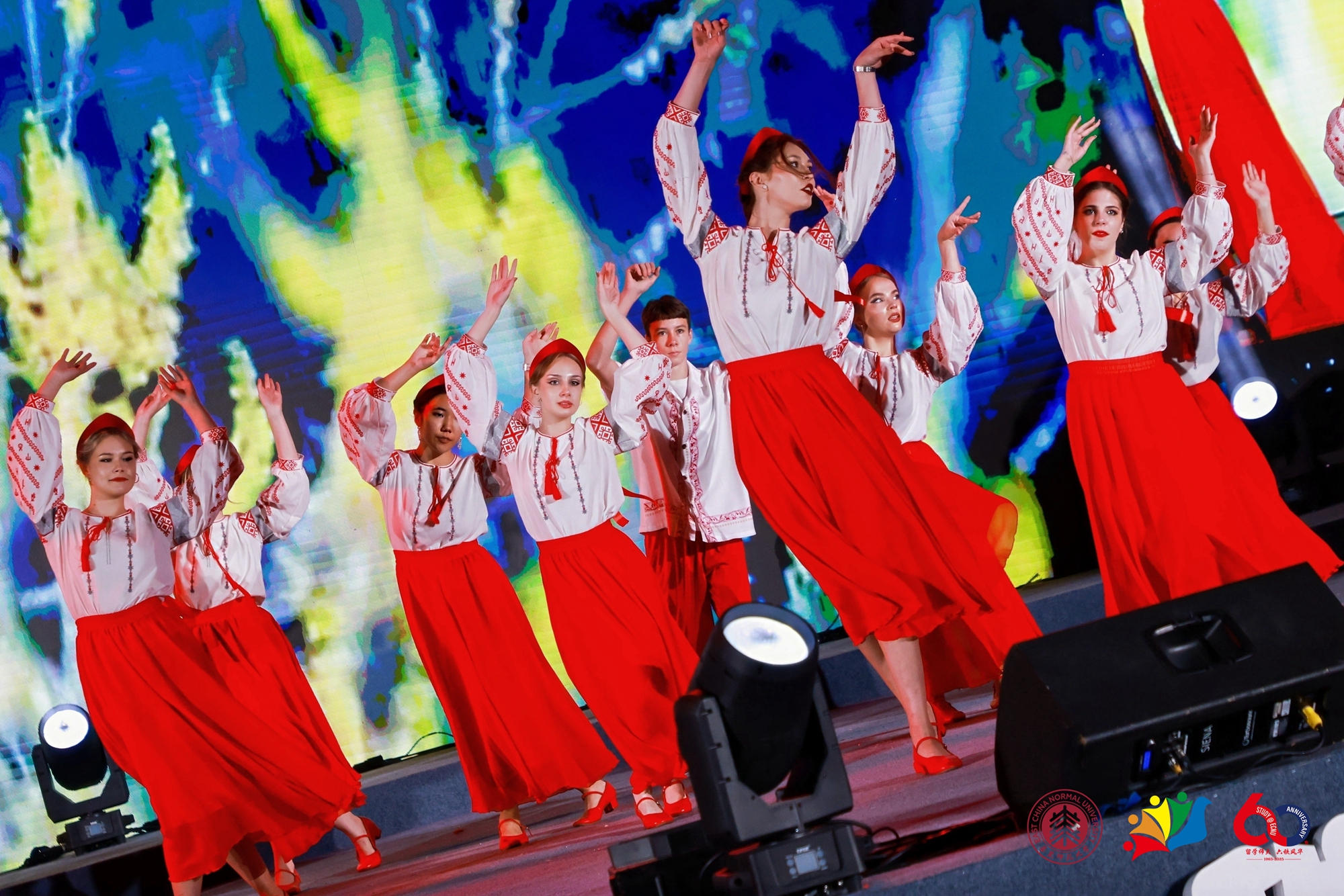 随着夜幕降临,来华留学六十周年主题文艺汇演在众人的期待中拉开序幕。振奋人心的鼓点瞬间点燃现场气氛。俄罗斯、日本、缅甸、越南等各国学子用灵动的舞姿展现了不同地域的独特文化。俄罗斯、塔吉克斯坦、马里等国的国际学生共同演绎昆曲《游园惊梦》,惊喜呈现中国传统戏曲文化的瑰宝;蒙古学生舞蹈《蒙古之魂》传递出草原文化自由、质朴与生命的韵律之美;在充满诗意的古典舞《清庭映月》中,国际学生们风姿绰约,展现了中国舞蹈的古典韵味。由中外学生合作弦乐伴唱的《喀秋莎》,引起全场共鸣。