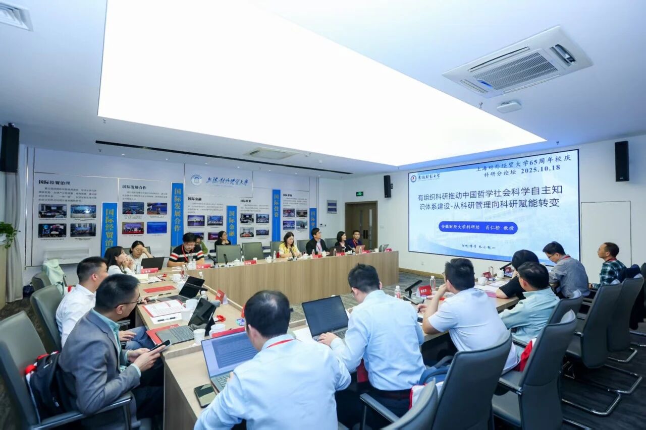 纪念大会后,学校举行了全球经贸创新发展论坛。本次论坛由校长论坛以及两场分论坛构成。论坛邀请复旦大学副校长周磊,同济大学副校长许学军,上海外国语大学校长李岩松,大连外国语大学校长丛明才,安徽财经大学党委书记、校长朱红军作主旨报告。下午,还举行了主题为“加快推进中国哲学社会科学自主知识体系研究新范式”科研分论坛和“全球视野下的区域国别研究:学科交叉与智库建构”区域国别研究分论坛。