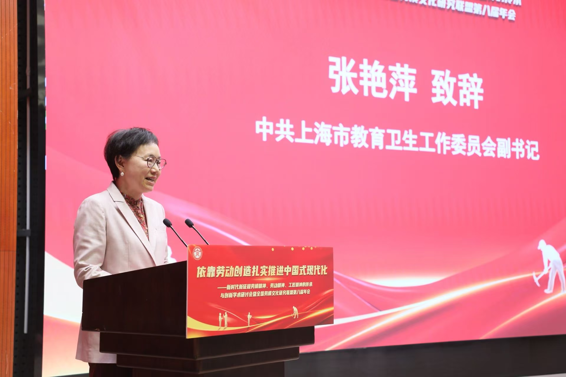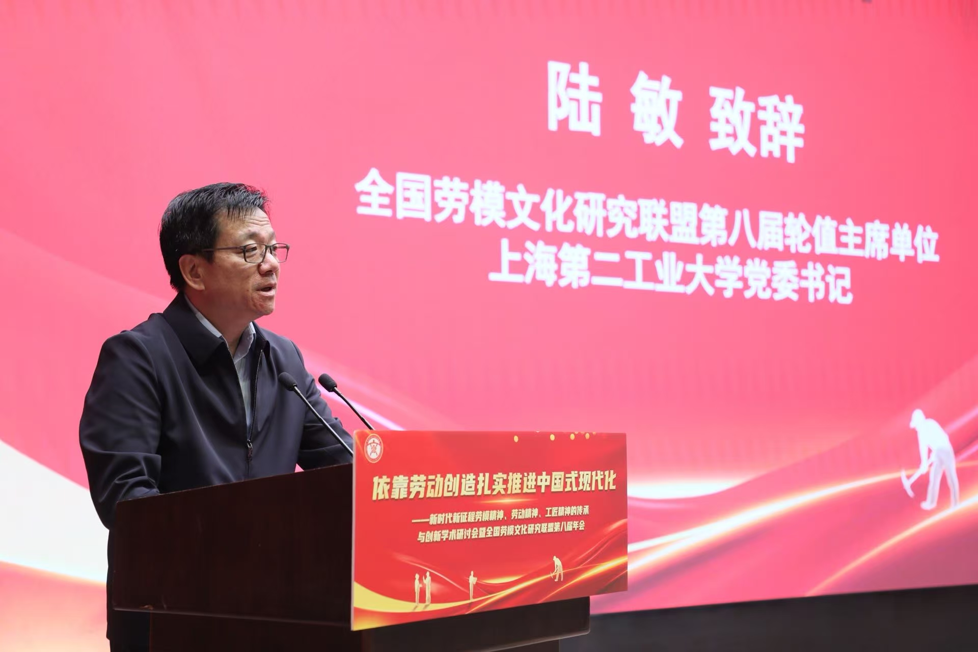 开幕式上,上海第二工业大学党委书记陆敏作为轮值主席单位代表致欢迎辞。他回顾了二工大65年来作为“劳动模范摇篮”的深厚传统,强调学校始终将劳模文化作为立德树人的精神底色,通过课程建设、实践育人与文化浸润,持续推动“三个精神”融入人才培养全过程,致力于培育更多德技并修、担当民族复兴大任的时代新人。