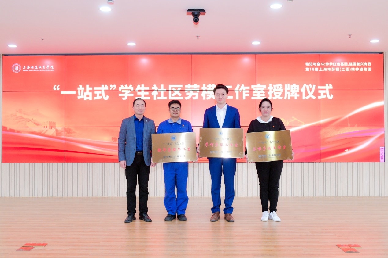 现场举行了“劳模育人实践基地”授牌仪式,上海市总工会宣教部劳模工作负责人范小雨为基地授牌,学校为季辉、张华、李勇、张丽韫等12位劳模颁发了特聘教授聘书。同步举行了“一站式”学生社区劳模工作室授牌仪式。劳模工作室落户社区,让劳模精神不再遥远,而是深深扎根于校园,融入学生社区生活,成为学子们触手可及的精神灯塔。