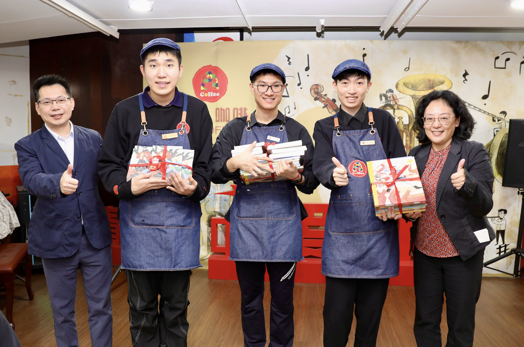 现场,上海商学院党委副书记、副校长劳晓芸与世纪出版集团党群工作部主任周勇剑向“爱咖啡”自闭症实践基地共同捐赠绘本及童书。