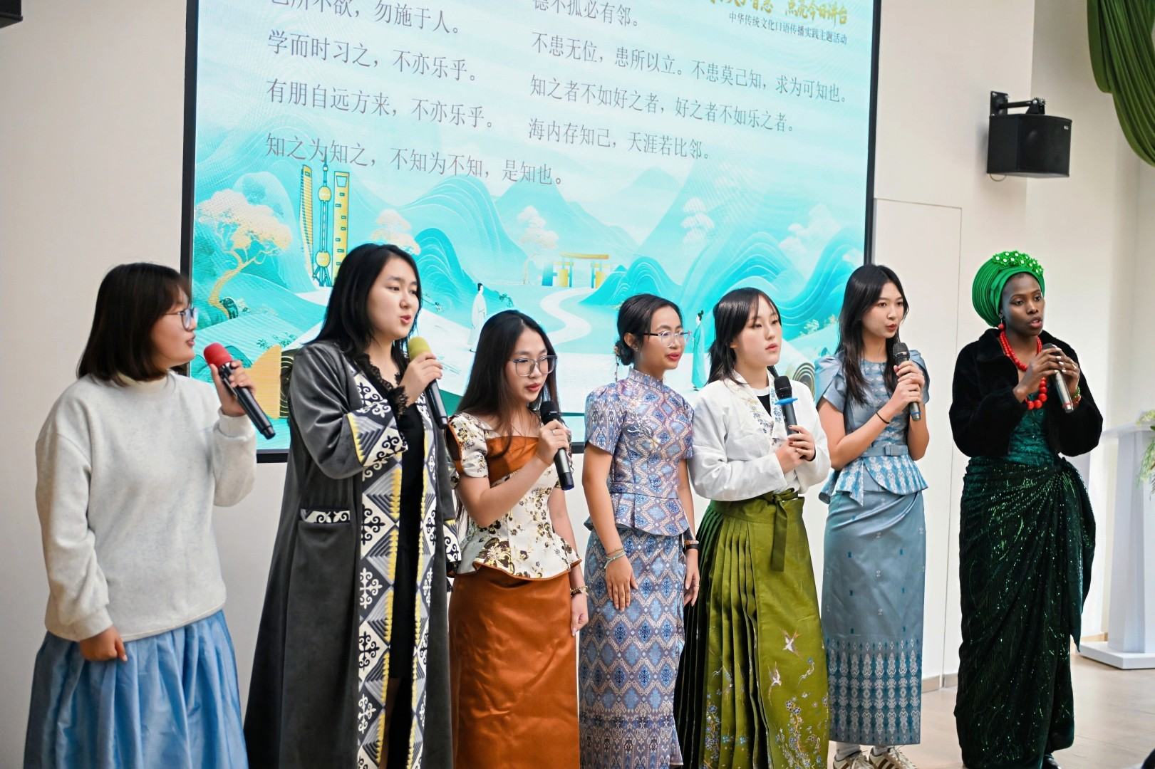 与此同时,“传承夫子智慧,点亮今日讲台”中华传统文化口语传播实践活动在花开海上生态园举行。中外师生以多语种为载体,让中华经典走出典籍,焕发生机。英语演讲“Learn the new while reviewing the old”生动诠释《论语》中的治学之道,中日双语情景剧《论语中的师德之光》细腻传递师者“传道授业解惑”的初心,中英双语访谈《孔子教我“做大人”》深入探寻“君子”品格的核心内涵,多语种合唱《儒韵Heal the world》则以旋律为媒,演绎“和而不同”的包容智慧。灵动的舞蹈、深情的演讲、默契的情景表演,让中华传统文化在跨语言、跨文化的表达中焕发别样时代魅力,也让中外学子在亲身参与中,深切感受中华文脉的深厚底蕴与强大生命力。