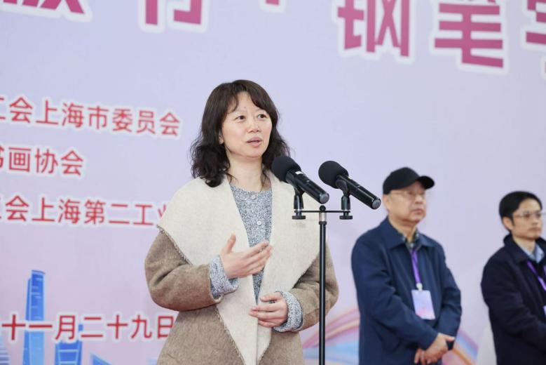 上海市教育工会常务副主席朱姝指出,历经十载积淀,上海教师“三笔字”大赛已成为锤炼教学基本功、弘扬中华优秀传统文化的重要品牌。她强调,教师是教育强国建设的核心力量,“三笔字”不仅是教师的立身之本,更是承载教育情怀、传承文化根脉的重要纽带。她希望以赛事为契机,激励广大教师不断提升专业技能,夯实育人根基,为上海教育高质量发展注入持久文化动能,并鼓励参赛教师以笔为媒展现风采、以赛促学深化交流,让“三笔字”真正成为教育教学中的亮丽名片。