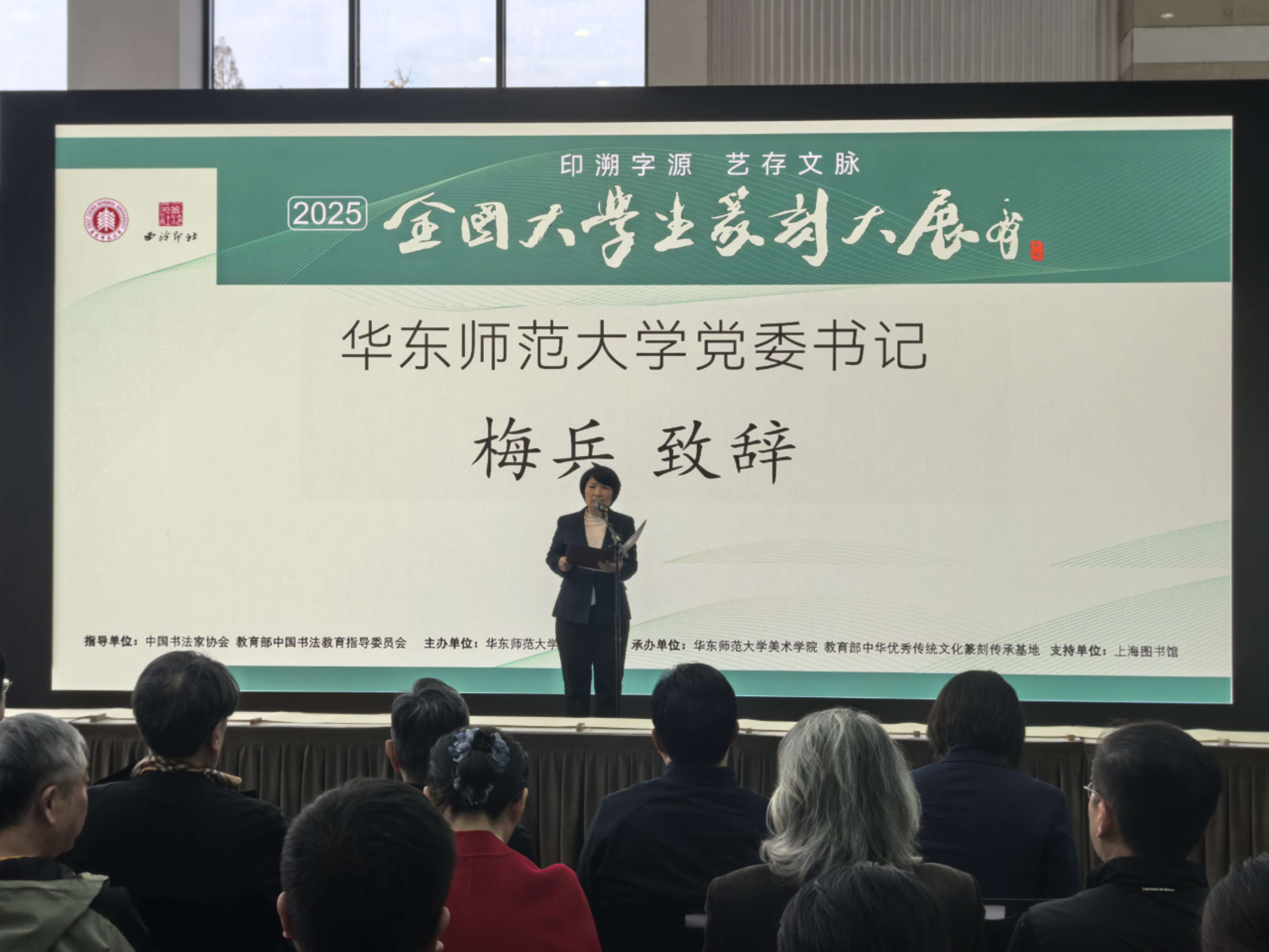 “时隔七年,再次举办全国大学生篆刻大展,既是对前期系列探索实践的系统总结,更是面向即将开启的‘十五五’,特别是对全面推进强国建设、民族复兴伟业的新任务、新要求的积极回应,力求在学术深度、专业高度、育人广度、社会参与度方面实现新的提升。”华东师范大学党委书记梅兵在致辞中表示,本次大展是深入学习贯彻习近平文化思想、落实教育部“学校美育浸润行动”的又一次具体实践。期待通过全国大学生篆刻大展等活动,为广大青年学子搭建更多广阔开放的交流平台和深入参与、亲身实践的机会,进一步激发青年大学生对中华优秀传统文化的热爱与敬畏,增强自觉传承弘扬的责任感与使命感。