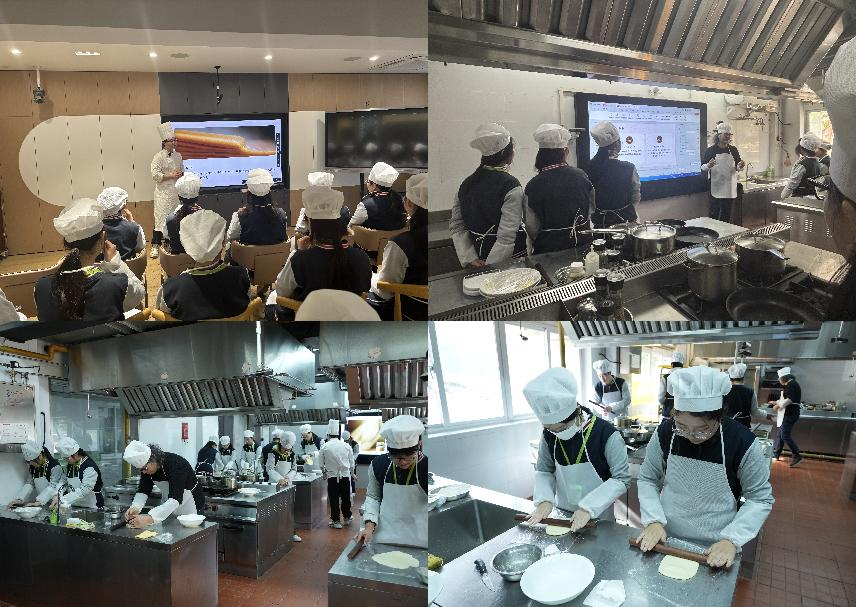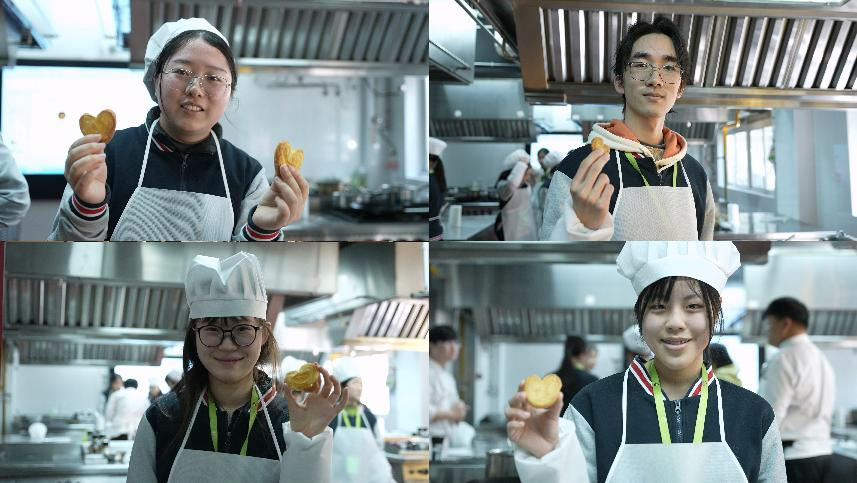 上午9点,艺术设计专业学生步入西餐烹饪实训教室,在西烹教师的指导下,从揉面、擀皮到烘焙,全程参与非遗蝴蝶酥的制作过程。学生们一边动手操作,一边细致记录酥皮层次与色泽变化等细节。“以往设计食品包装只能凭借想象,现在亲手制作后,对酥皮的纹理和烘焙的火候都有了更直观的感受,”一位艺术设计专业的学生在记录时说道。
