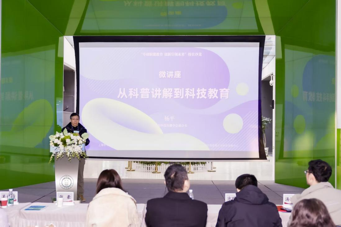 而来自上海市科技传播学会副会长杨平更是拿出了自己数十年从事科普讲解、科学实验推广和评审工作的宝贵经验,给校长们带来了一场干货满满的微讲座,让科技教育成为一件可以“飞入寻常校园里”的事。