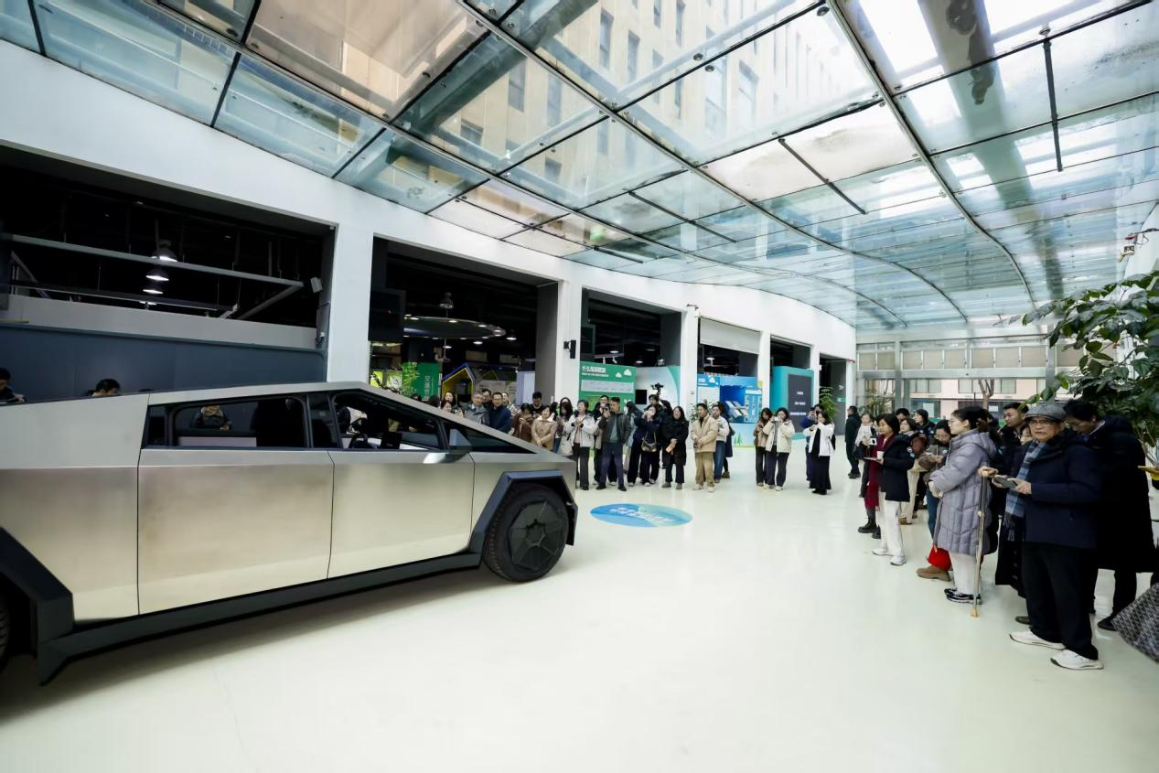 1月21日,80多位中小学校长在上海科学节能展示馆齐聚。展馆一头,特斯拉赛博越野旅行车的智能灯光秀如银河倾泻,每一道光束都在诉说清洁能源的诗意;而在另一头,以“开卷新能 零碳智典”为主题的特展也在向这群特殊的来宾展示“双碳”目标下千行百业的转型和创新。