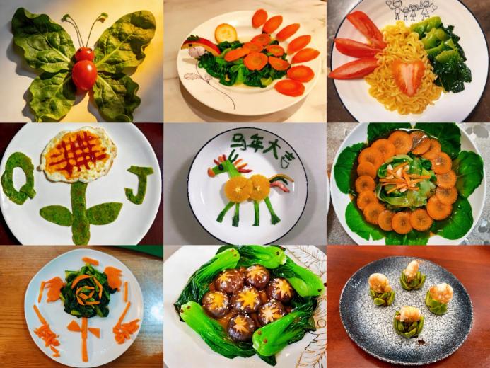 从新鲜蔬菜到餐盘中的佳肴,蔬菜瞬间“变变变”!孩子们在老师的指导下,发挥精湛厨艺,把蔬菜变成了一道道舌尖上的美味。
