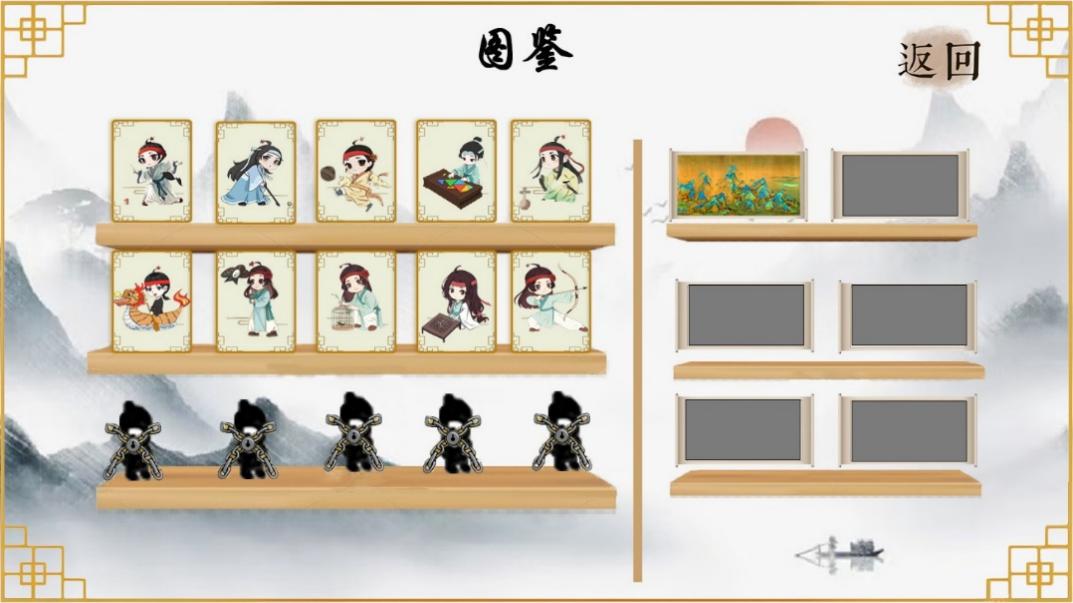 道具与特效组将游戏体验中捕捉的动态转化为线条与色彩,设计出兼具古风质感与卡通活力的软毛刷等互动工具;场景组以水墨风为基底,绘制出射箭、龙舟竞渡等可拼接的古画场景线稿;角色组结合历史素材,塑造出贴合星漫小子风格的Q版传统游戏角色;UI组则提取中国风元素,设计出适配游戏流程的工作台与图鉴界面。