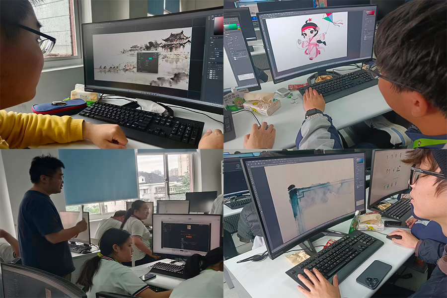 本次课程以“古画修复”游戏开发为项目载体,创新性地采用“传统游戏体验+专题视频学习+创意美术创作”的三段式教学法。学生首先通过射箭、划龙舟、放风筝、下围棋及斗蛐蛐等主题网络小游戏,沉浸式感受传统游戏的玩法精髓;随后借助专题视频深入了解这些民俗活动的历史渊源与场景细节;最终分组完成游戏美术资源的创作任务。