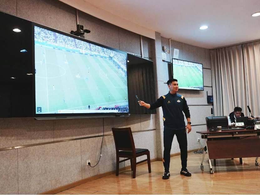 课程设置从教练员角色定位到运控技术,从体能训练到损伤康复,甚至还有“足球思政课”,既有深入浅出的理论讲解,又有针对性极强的实操演练,兼具专业性与实用性。讲台上,有来自上海体育大学足球学院的教授、国际级裁判、青训专家组成的“导师梦之队”;球场上,教师们换上装备,从理论到实操,在绿茵场中奔跑拼抢,把刚学到的理论知识,通过每一次触球亲身演练。