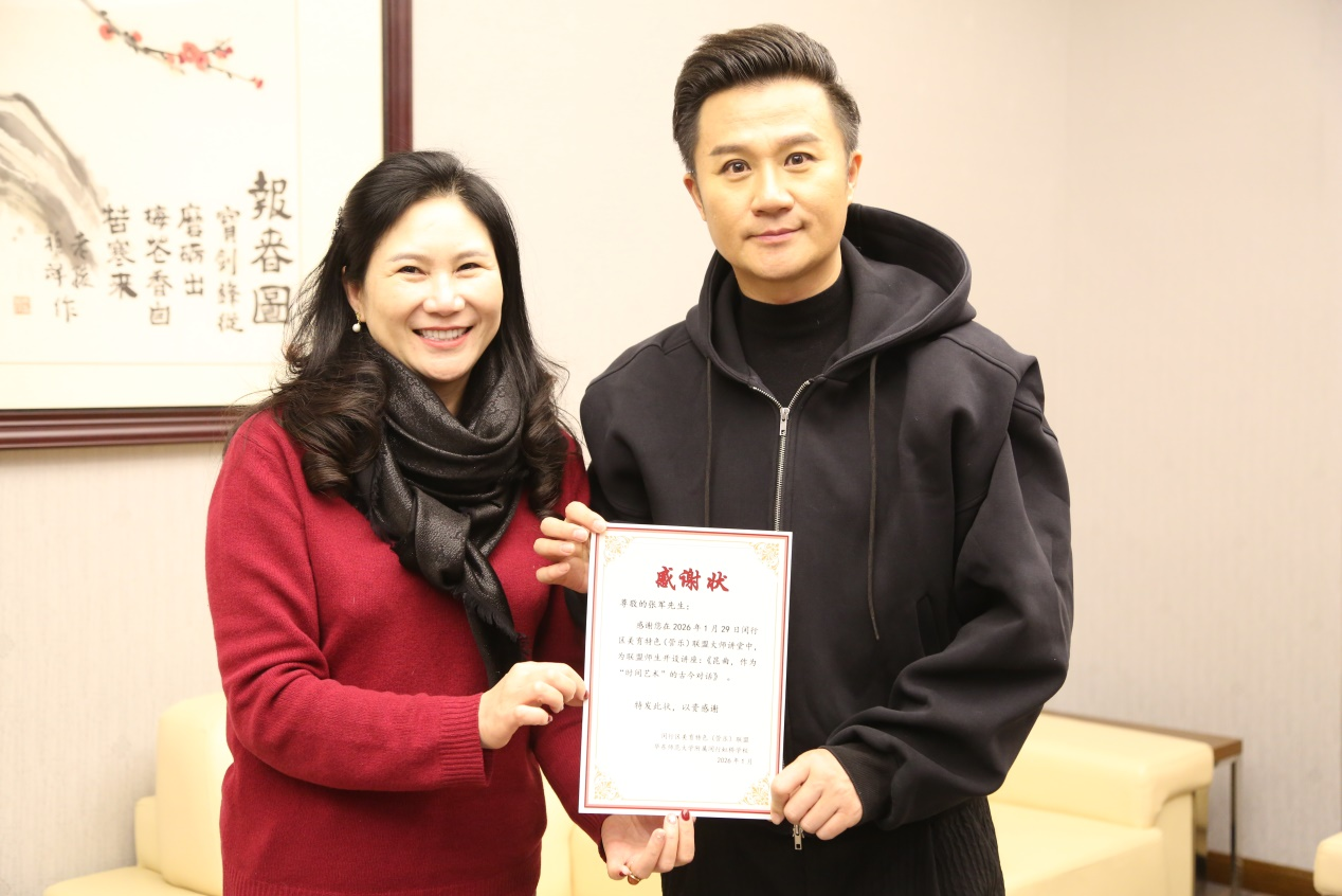 活动现场,华师虹桥校长林文为张军颁发感谢状,致谢其带来这场高质量的艺术课堂,并期待未来能与张军带领的上海戏剧学院附属戏曲学校深化合作,推出更多昆曲普及课程,让传统艺术走进更多师生心中。