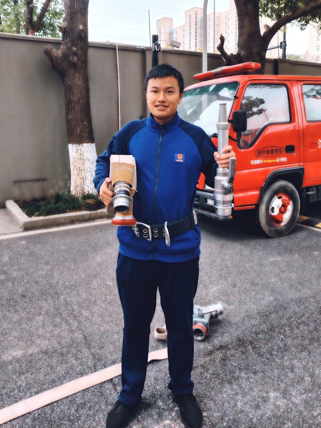 同时,消防救援专业的特色培养也为他筑牢了能力根基。每周10公里的长跑训练,锤炼了他的体能与毅力;坚持多年的书法练习,打磨了他沉着冷静的心态。“专业训练不仅教会我们应急救援的技能,更让我们养成了遇事不慌、果断处置的习惯。”丁文杰说。此外,他还积极参与校园志愿服务,从社区敬老到校园安全宣传,始终以微笑传递温暖,这份向善向美的初心,正是学校德育的生动体现。