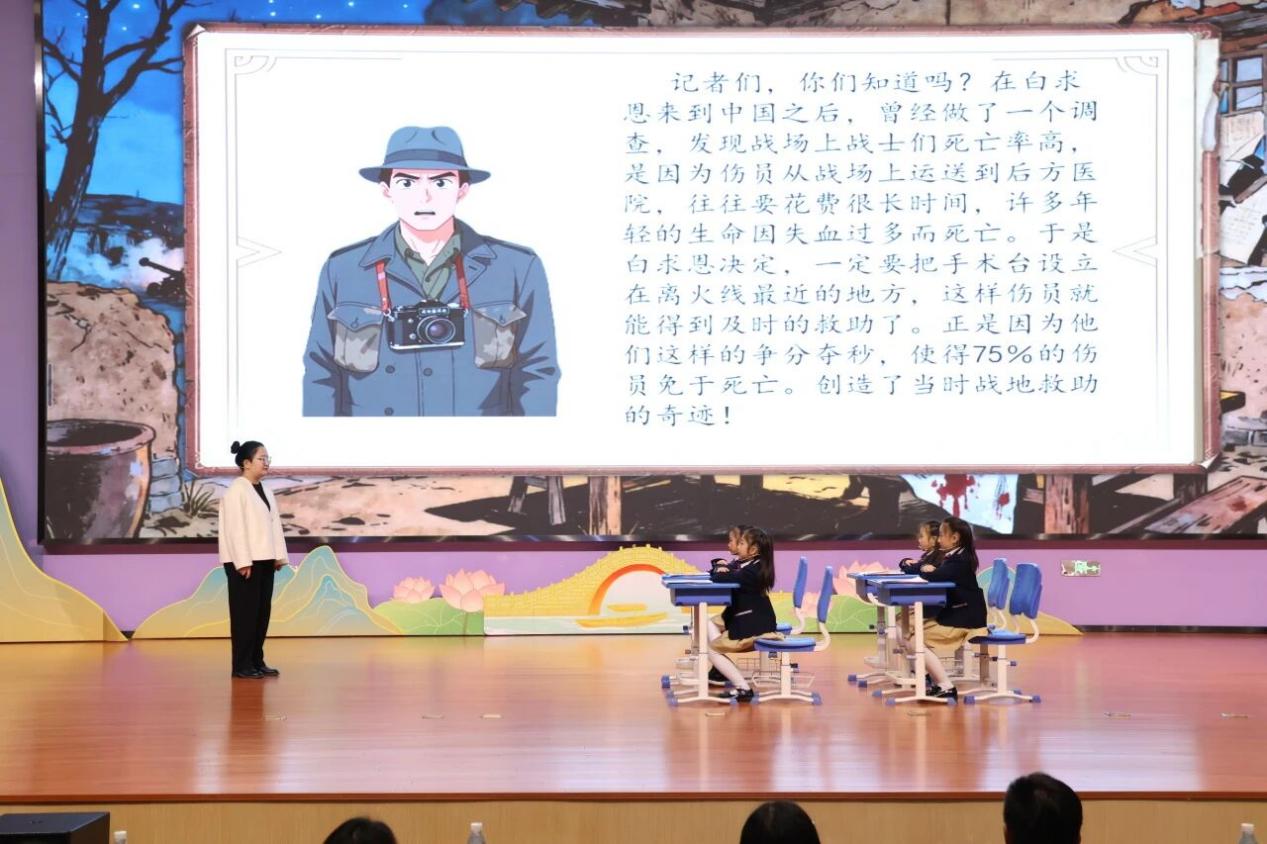 新课堂的“新”,不在于技术本身,而在于教师能否用技术回应真实的教学问题。语文组唐雅男、曹若文老师带来了语文课《手术台就是阵地》的数字化课例。课堂化身“战地”,通过AI数字人、战场音效营造沉浸情境,借助可视化思维支架突破理解难点,在语言训练中自然升华家国情怀与人物品格。