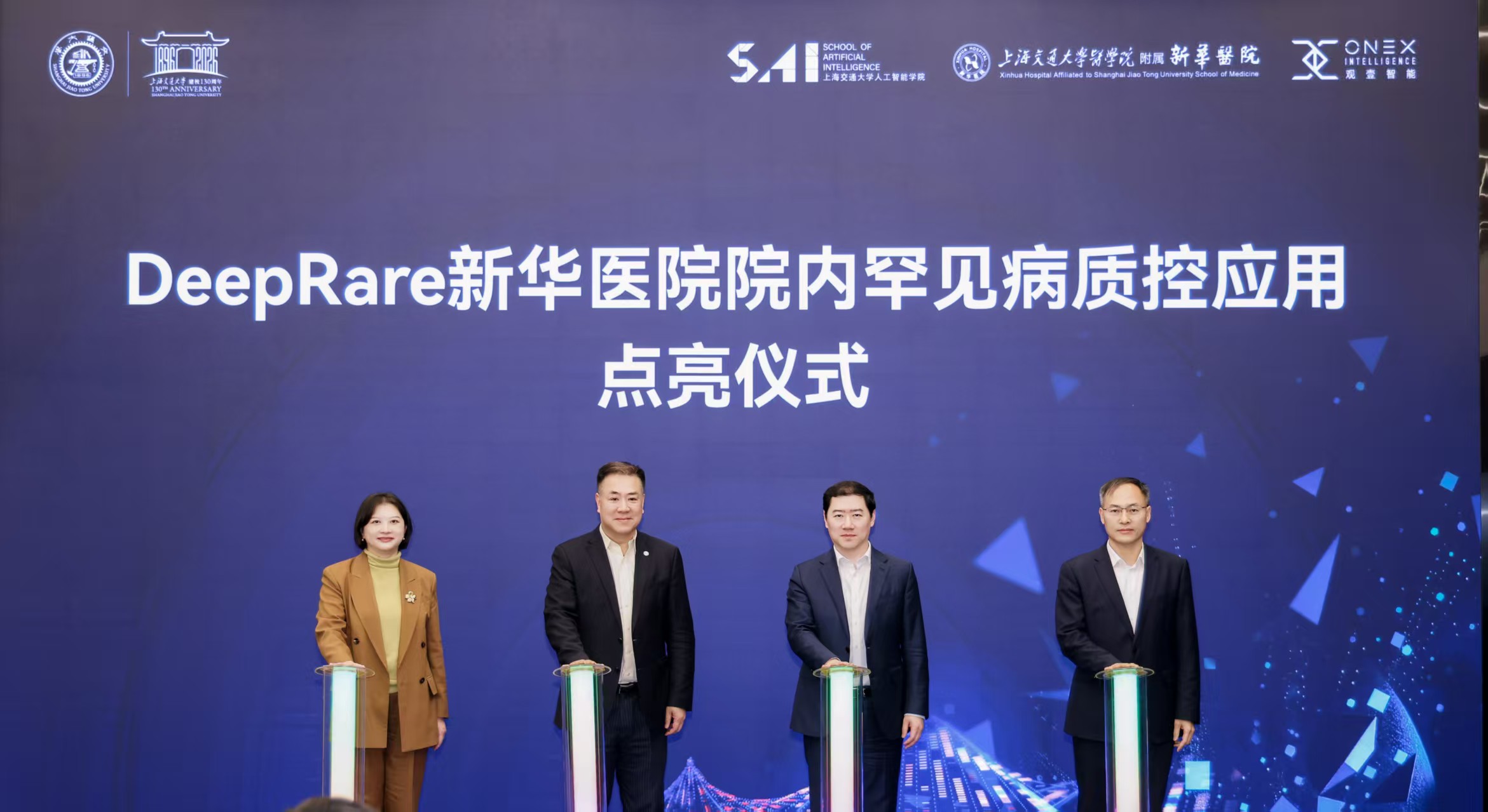 活动当天,“人工智能与生物医药交叉创新中心(筹)”共建仪式启动。中心计划利用人工智能重构海量、碎片化的全栈生命健康数据,织就一张贯穿“分子-细胞-器官-个体”的多维智慧图谱,力争将重大疑难疾病的研发由“经验驱动”转向“精准计算”。DeepRare新华医院院内罕见病质控应用正式亮灯仪式也在当天启动,标志着前沿AI智能体全面扎根于真实的临床工作流。