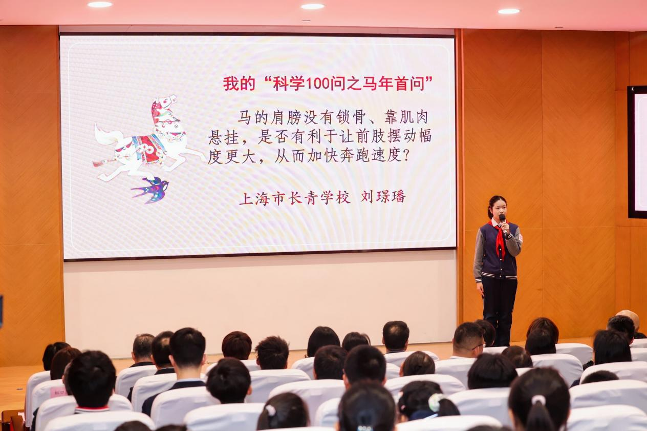 在重磅发布环节干货满满,为学子们的科学探索之路点亮明灯。上海市长青学校的刘璟璠同学提出的“马年首问”——“马的肩膀没有锁骨、靠肌肉悬挂,是不是为了让前肢的摆动幅度更大,从而加快奔跑速度?”,入选“科学100问”入围名单,生动诠释了“身边疑问皆可成为科研起点”的探索理念。同步发布的“虹口区学生科学提问指南”与“虹口少年自然探源行动倡议书”,精准破解学生“不敢提问、不会提问”的难题。上海自然博物馆推出的“馆校资源包”及科技馆藏品捐赠,延续了馆校联动的优质资源共享模式。