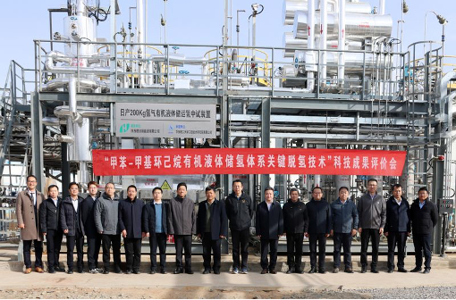 专家组实地考察了中试装置、审阅了技术资料,经质询讨论后一致认为:该成果建成了国内首套200kgH₂/d甲基环己烷脱氢中试装置,新型催化剂性能优异,装置运行稳定、关键指标优于设计值,为绿氢大规模安全储运提供了可行解决方案。评价委员会同意通过评价,认为该成果总体达到国际先进水平。