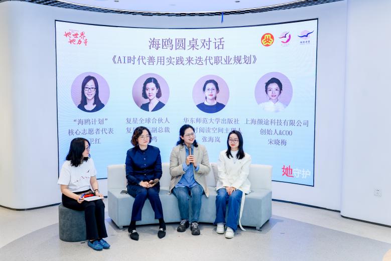 活动现场还举行了主题为“AI时代,善用实践来迭代职业规划”的圆桌讨论,解读“女性职业发展报告”。场外同步开展了“苏河汇菁英 海鸥智未来”普陀区“春风行动”桃浦专场线下招聘会及职飞起航线上直播招聘会,持续为女大学生提供切实、全过程的就业指导与岗位对接服务。