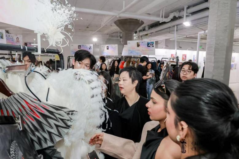 3月26日上午,2026“中华杯”时尚院校产教融合成果展在四行仓库创意秀场举行,正式开始迎接来自海内外专业观众的检验。现场进行了2026“中华杯·太酷”大学生毕业季大赛入围决赛的选手作品集中展示,选手们热情向专业观众介绍自己的设计理念与设计亮点,分享从设计稿落地成衣过程中的小故事;首届“中华杯”高中生国际时尚设计大赛入围作品也进行了艺术展陈,以上工申贝(集团)股份有限公司、山东轻工职业学院、镐京教育集团、杭州职业技术大学、浙江纺织服装职业技术学院、成都轻工职业技术大学、上海三枪(集团)有限公司、上海国际时尚教育中心、意大利马兰戈尼设计学院(上海)、中国纹饰纹样研究院、AI时尚新生态中心等为代表的“时尚产业人才成长联盟”单位产教融合成果集中呈现。这场精心策划、板块多元、创意纷呈的产教融合成果展显示,自2025秋冬上海时装周启动至今,“时尚产业人才成长联盟”的创新力和协同力远超预期,已经交出了第一份答卷。