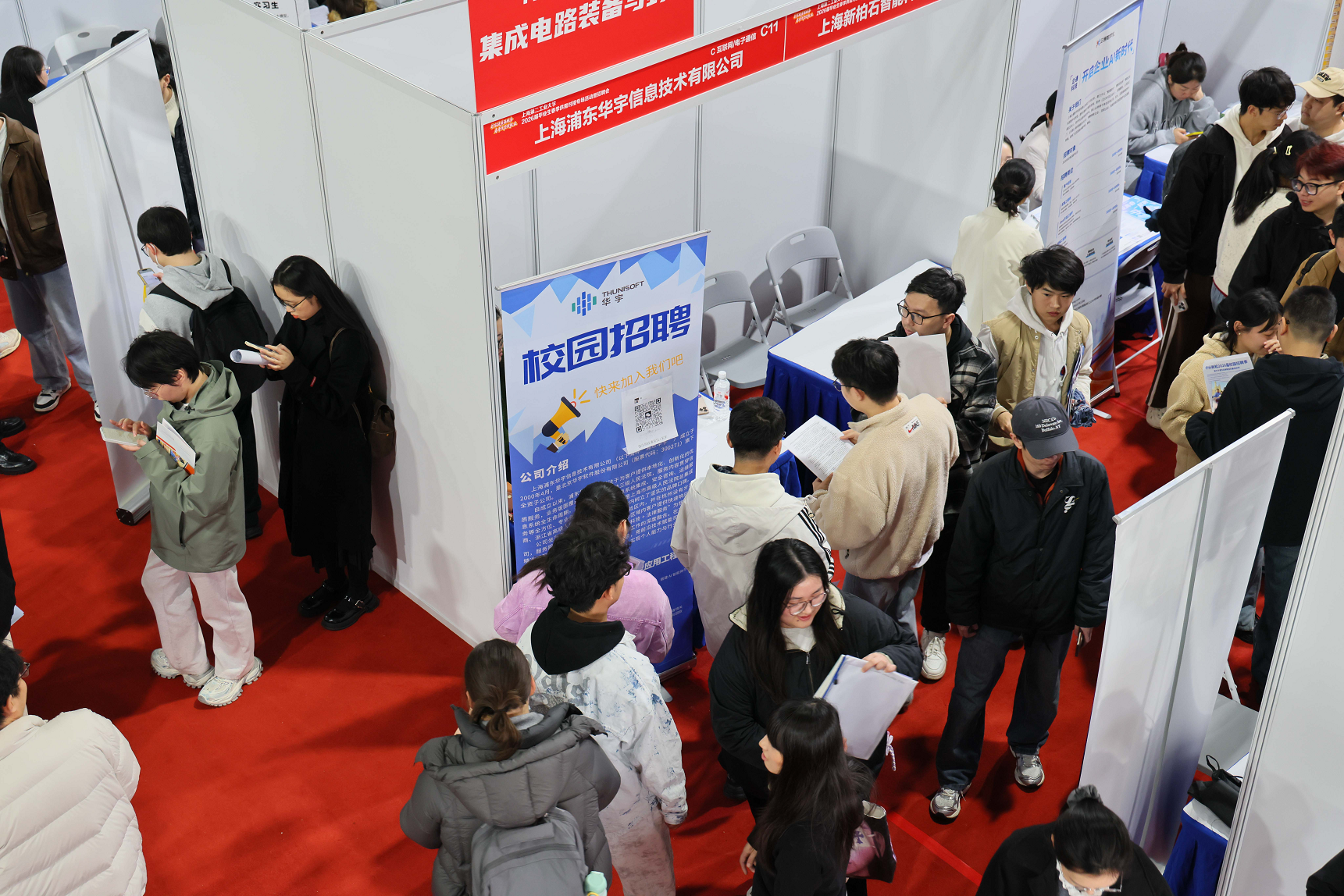 作为扎根上海、服务上海的应用型高校,二工大始终以上海产业发展需求为导向,本次招聘会精准对接上海重点产业发展规划,依托学校综改四大重点领域的学科专业优势设计整体板块,将岗位资源与学校专业特色高度融合。记者了解到,招聘会定向邀请350余家优质用人单位参会,涵盖央企、国企、高新技术企业、专精特新“小巨人”企业等多种类型,行业覆盖集成电路、生物医药、人工智能、电子信息、先进材料、绿色低碳等20余个行业,宝山区、崇明区团委、城投集团、北科创集团等组团来校招聘,提供上万个优质就业岗位。岗位设置与二工大四大重点领域专业高度契合,为毕业生搭建起专业对口、精准适配的就业桥梁,切实满足企业人才需求与毕业生求职期望。