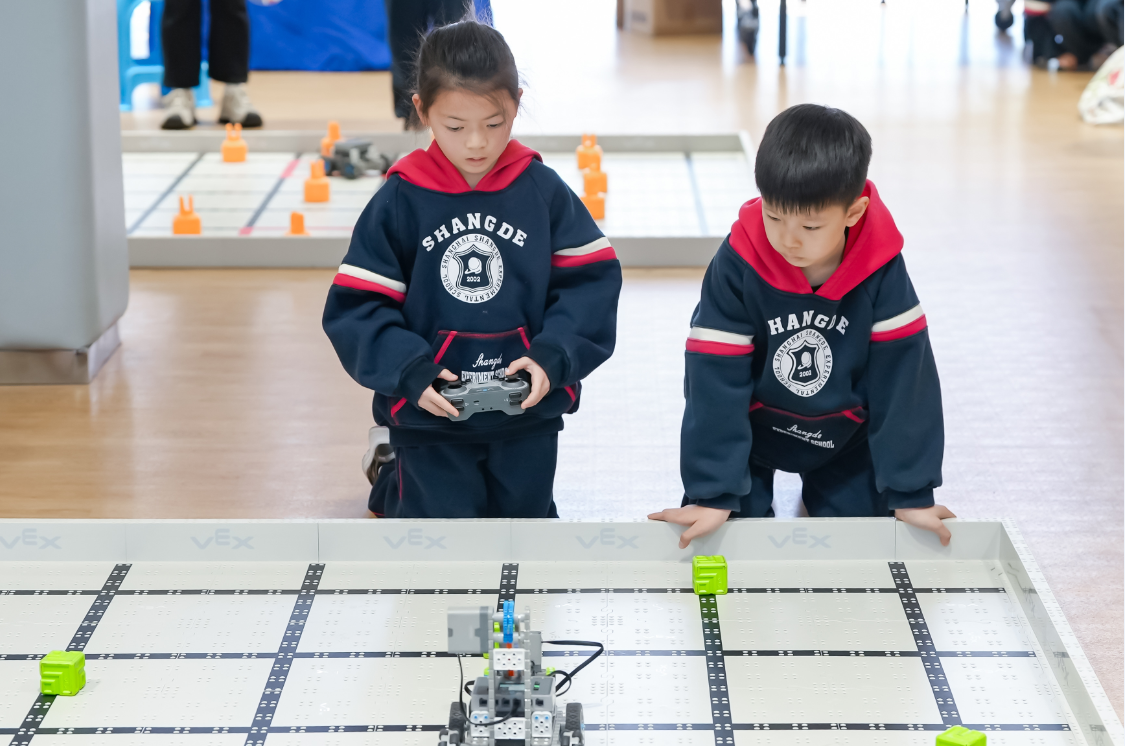 机甲编队列队布阵,奏响整齐划一的乐章,无人机闪转腾挪,玩起你来我往的空中足球。近日,一场参赛人数超过500人,覆盖尚德全学段学生及众多校外参赛队伍的科创大赛在尚德实验学校举行。