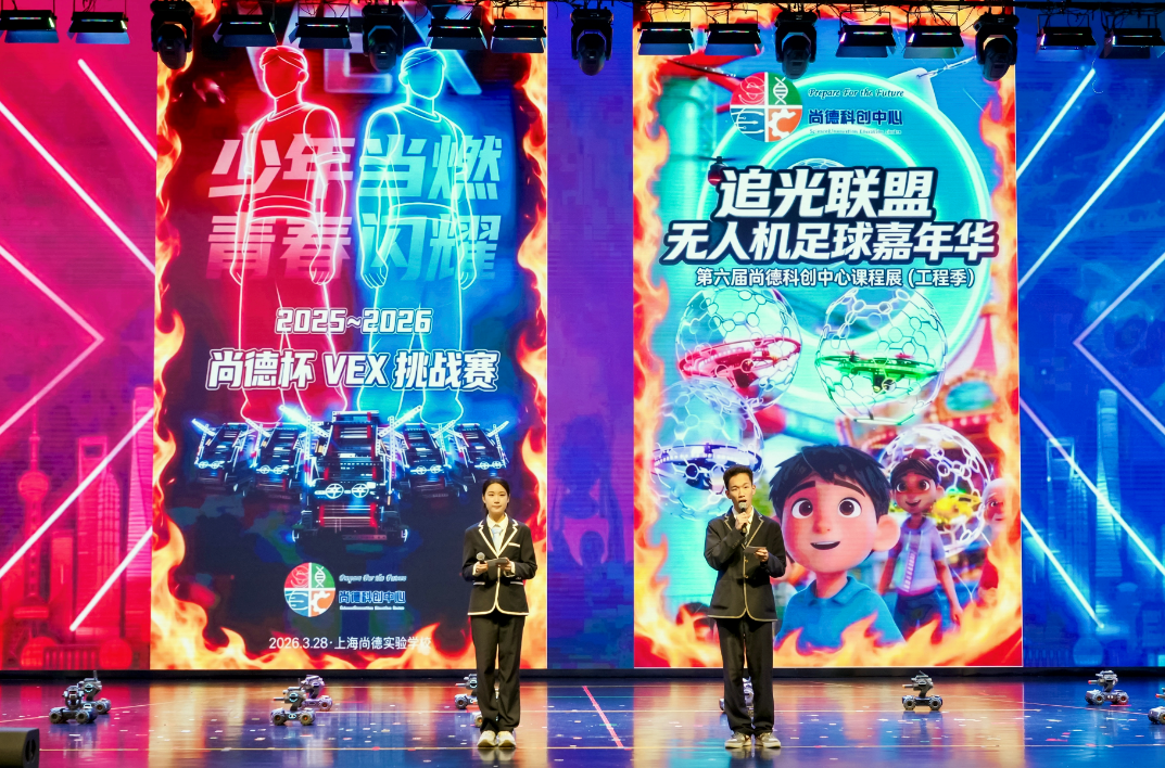 开幕式上,尚德实验学校校长姜晓勇、上海交通大学学生创新中心总工程师、VEX全国机器人大赛组委会秘书长冷春涛教授出席并致辞。本次2025—2026尚德杯VEX机器人挑战赛与追光联盟・无人机足球嘉年华两大项目,由上海交通大学学生创新中心、上海市航空车辆模型协会、上海科技教育指导中心提供专业指导。VEX赛事汇聚上海多所名校强队同台竞技,无人机足球面向全社会开放、实行混龄组队,支持亲子携手参赛,专业竞技与趣味实践相结合。